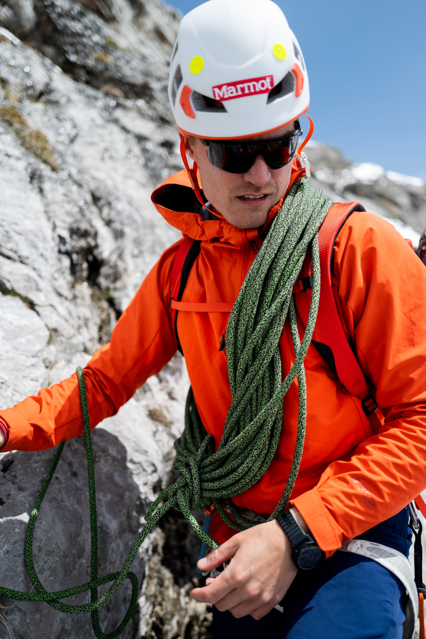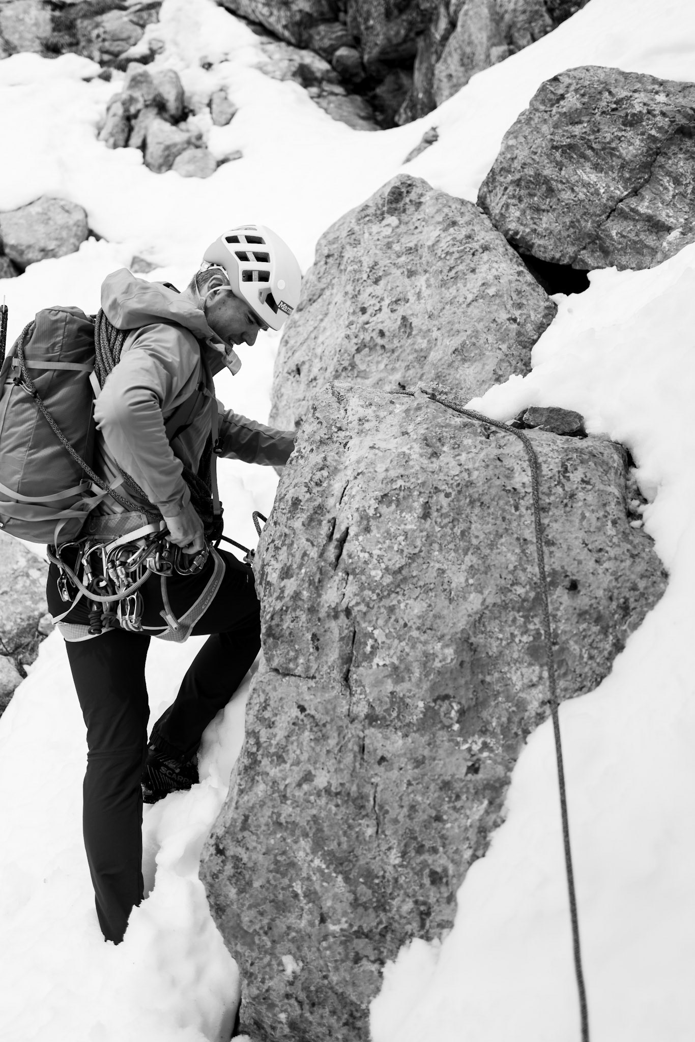 Creating imagery for Oscar Krumlinde, IFMGA Mountain Guide Aspirant, wearing gear from his partner Marmot Europe.